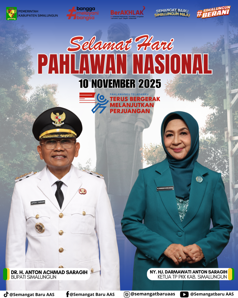 Pemkab Simalungun Gelar Upacara Peringatan Hari Pahlawan ke-80 Tingkatkan Tata Kelola Keuangan Nagori Berbasis SID, Pemkab Simalungun Kunker ke Kabupaten Tangerang Bupati Simalungun Hadiri Advokasi Pembangunan PPPA, Perkuat Komitmen terhadap Kesetaraan Gender dan Perlindungan Anak Pimpin Rakor Pemerintah, Bupati Simalungun Tekankan Pentingnya Sinergi antar Perangkat Daerah Dinas Pendidikan Simalungun Gelar Sosialisasi Transformasi Digitalisasi Sekolah Bersama “Sekolah SeRu”