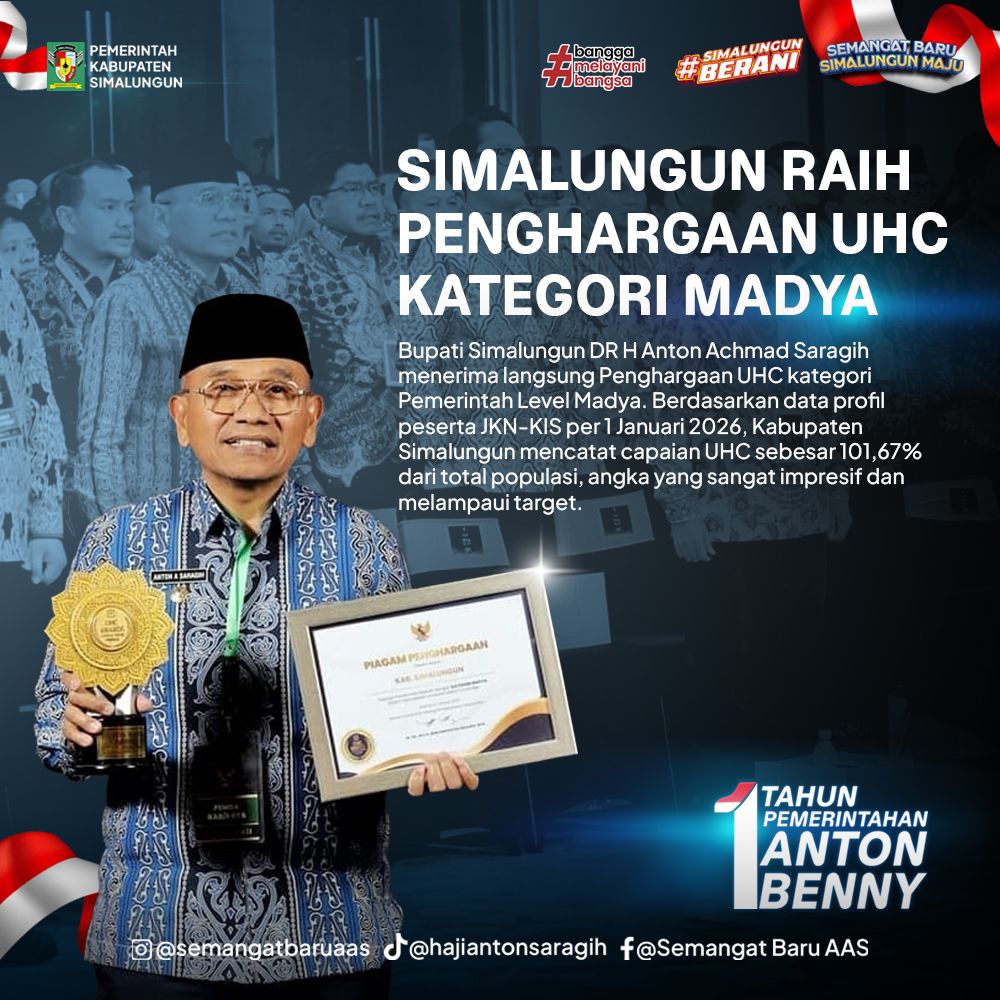 Bupati Simalungun Terima Penghargaan UHC Kategori Madya: Capaian Kepesertaan Tembus 101,67%